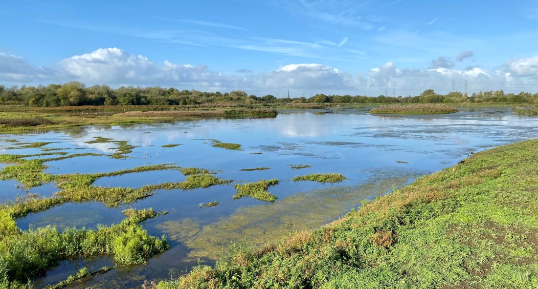 It was time for the monthly Wetlands Bird Survey (WeBS) today. Although there was heavy rain at dawn, it soon cleared to become clear and sunny, with a touch of that pleasant autumn coolness. The recent bursts of heavy rain are already starting to increase the water area on the western cell of the new No.4 bed wetland, while the eastern cell, which is just weeks away from completion, already has some shallow pools forming. Highlights of the morning were: a late, lone Swallow heading south, a couple of Little Egrets in front of the Morgan Hide (still surprisingly uncommon on the Reserve), the build-up of Jack Snipe and Common Snipe, plus 10 Black-tailed Godwits, on the new wetland and Cetti’s Warblers singing everywhere. Wildfowl numbers were still relatively low with peak counts of 130 Shoveler and 250 Teal. Also, nice to still be seeing dragonflies and butterflies, with 2 Migrant Hawkers, 4 Common Darters, 1 Comma and 3 Red Admirals noted. Photo of the western cell of the No.4 bed wetland Cheers David Bowman (with Helen Allan and Brian Baird)