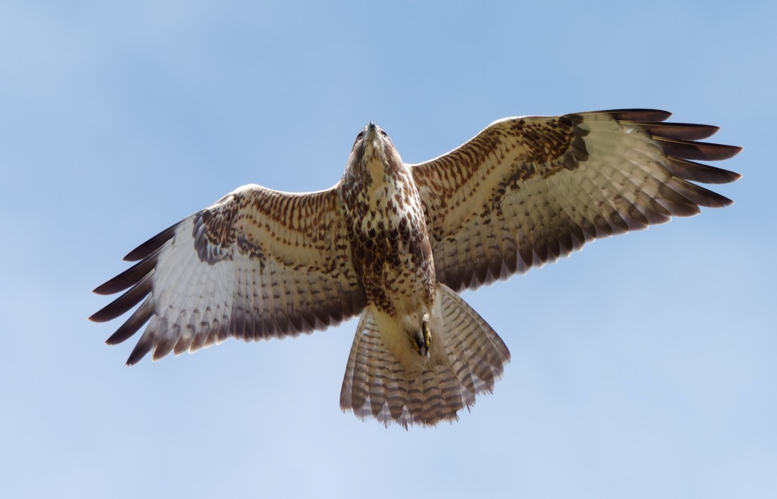 There is always a sense of anticipation when the monthly visible migration-watch coincides with ideal conditions, as it did today. The skies were blue and the wind a very light southerly as we climbed up at dawn to take our position by the Elevated Pools on No.1 bed. Thrushes and Redwings were moving from the start, and by mid-day had totalled: 2,150 Fieldfares, 2,165 Redwings and 1,500 Woodpigeons. Finches were moving, too, but in small numbers. with counts of 4 Bramblings, 27 Siskins, 9 Lesser Redpolls and 100 Chaffinches. With eyes constantly on the skies, there is always a chance of picking up something unusual (particularly when sharp-eyed Dan Owen is involved) and it started today with an Osprey, which was chased away by Carrion Crows, in the direction of No.3 bed. Then 3 Ring-necked Parakeets flew over calling, followed by a drake Pintail, an uncommon bird at the east end of the Reserve. Bird of the day, though, was undoubtedly the adult male Hen Harrier which drifted over Butchersfield Tip before scattering the corvids on the fields to the south. A great morning finished with a few hundred Pink-footed Geese passing low over our heads. Photo of a Common Buzzard Cheers David Bowman (with Dan Owen and Helen Wynn)