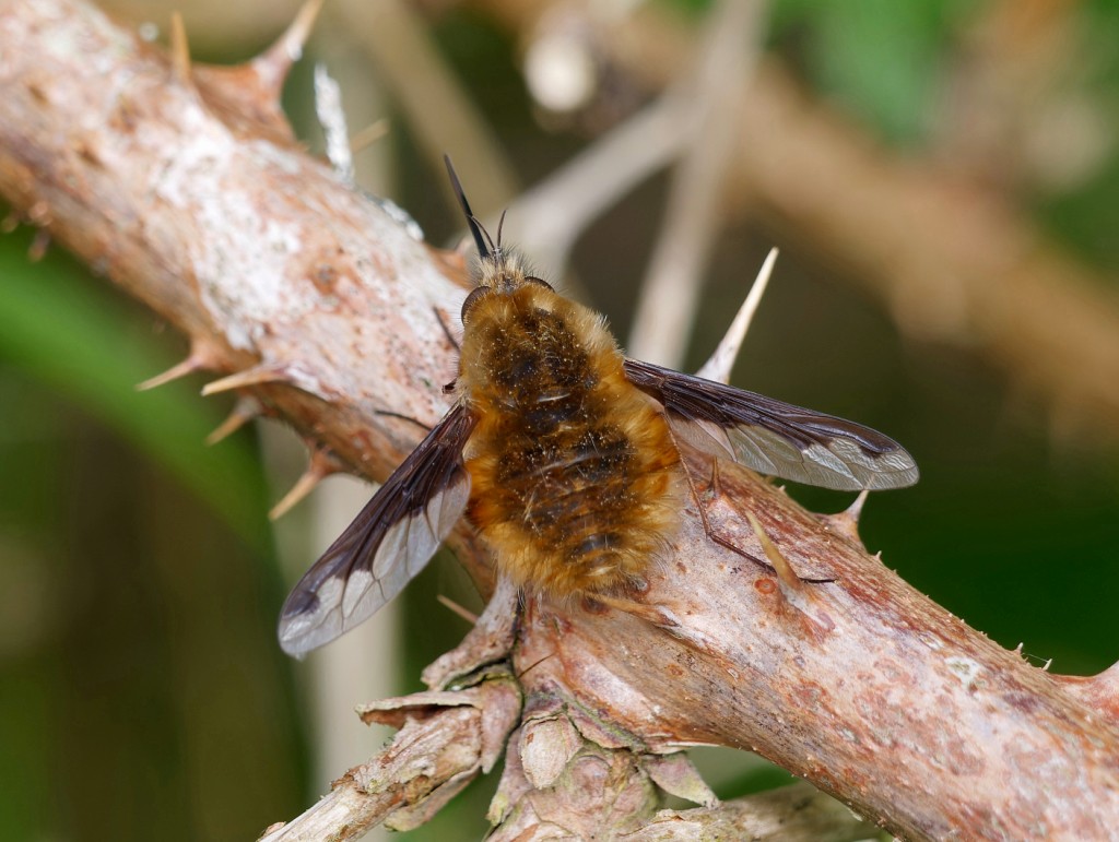 We mainly spent the morning scanning for migrants from the viewing platform on No.4 bed. While there was no sign of yesterday’s Avocets, waders were the main feature, with 8 Dunlins, 2 Common Sandpipers, 2 Little Ringed Plovers, 2 Oystercatchers and a Snipe noted. In addition, it was pleasing to see 11 Swifts hawking to the west of the bed, which may have been early returners to the Westy Estate breeding colony, while the 8 Yellow Wagtails which passed over was a good count for us. On No.3 bed, we checked our clump of the attractive plant Solomon’s Seal to photograph the Solomon’s Seal Sawfly, the larvae of which live on this particular plant and can leave the leaves with more holes than a cullender. Fortunately, this tends to happen after flowering and the plants tend to regenerate happily the following year. Two interesting events to report, too. A Willow Tit, which was trapped on No.3 bed last Saturday was already ringed but not by one of our ringing teams. Turns out it was originally ringed at Elton, near Bolton, last summer, 15 miles to the north of the Reserve. Willow Tits rarely move far and in more than forty years of ringing, this is the first one to arrive from another site. Finally, last summer, Pete Boardman from Natural England kindly undertook an invertebrate survey for us. Little did he know that in doing so he would turn up a new beetle for the UK - Glischrochilus grandis, an Eastern European species and yet another addition to the Reserves’ extensive species’ list. Photo of a Bee Fly Cheers David Bowman (with Dan Owen, Helen Wynn and Sue Haddock)