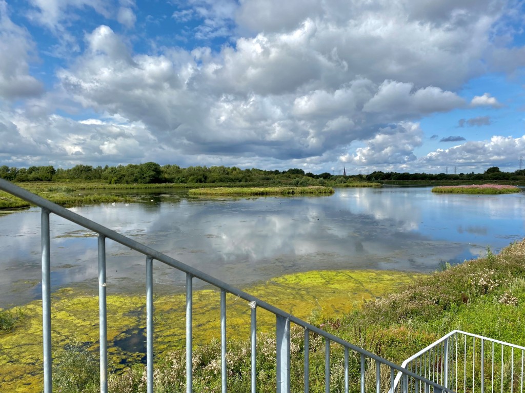 Yesterday was our first visible migration session of the year. Conditions looked decent as we settled onto the No.4 bed viewing platform, with a warm but blustery southerly wind and rain tracking to the north of us over Winter Hill. Hirundines and Swifts were moving from the start and we gradually accrued counts of 67 Swifts, 102 Sand Martins, 40 House Martins and 11 Swallows, though few passerines were moving, with just 3 Meadow Pipits and a Grey Wagtail noted. Constant scanning during passage periods is often rewarded with something good and yesterday was no exception. A wader coming in from the east turned out to be a Ruff, an uncommon visitor to the Reserve, followed by 2 juvenile Black Terns. Although we always hope to see the odd adult Black Tern in spring, autumn juveniles are much scarcer for us. Other sightings of note included 2 Ravens, a Peregrine and out on the water, 2 Garganey and 5 Black-necked Grebes. We finished an excellent morning in No.3 bed, where a hawking Hobby and 11 more Swifts were the highlights. Photo of the view from the No.4 bed platform Cheers David Bowman (with Dan Owen)
