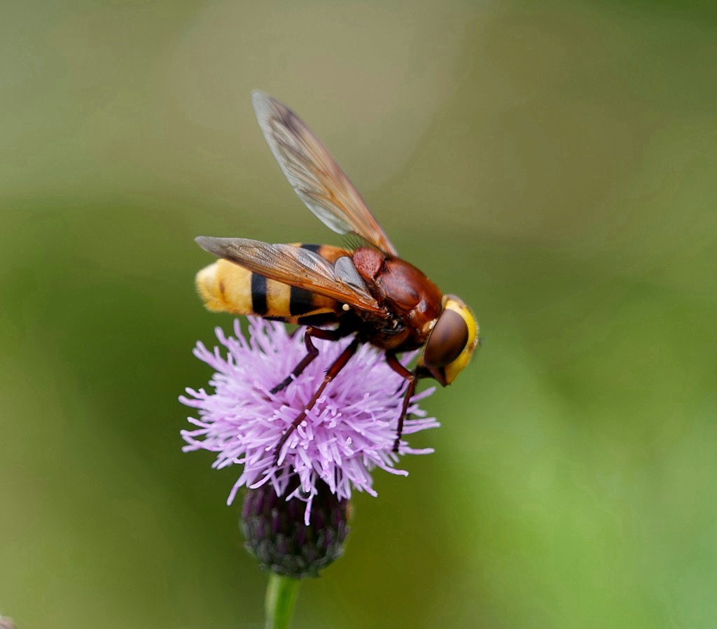 It’s that time of year when large numbers of juvenile Lesser Black-backed Gulls, which have fledged from the nearby breeding colony, arrive on No.3 bed along with smaller numbers of adults. This morning there were nearly a hundred juveniles and a score of adults. With so many large, predatory gulls present there were bound to be casualties among our breeding water-birds. This time it was a juvenile Water Rail, which was snatched from the Morgan Hide scrape by an adult gull and subsequently torn apart and fed to two juveniles. It’s nature in action but still a tough watch. Otherwise, totals from Nos.3 and 4 beds included 1 Greenshank, 2 Garganey, 8 Green Sandpipers, 4 Black-tailed Godwits and an adult female Marsh Harrier, almost certainly our breeding female which successfully raised two young. Thirty Swifts were over No.4 bed, with another seven moving south over No.3 bed and it won’t be long till we bid them adieu for another year. Photo of a Hornet Hoverfly Cheers David Bowman