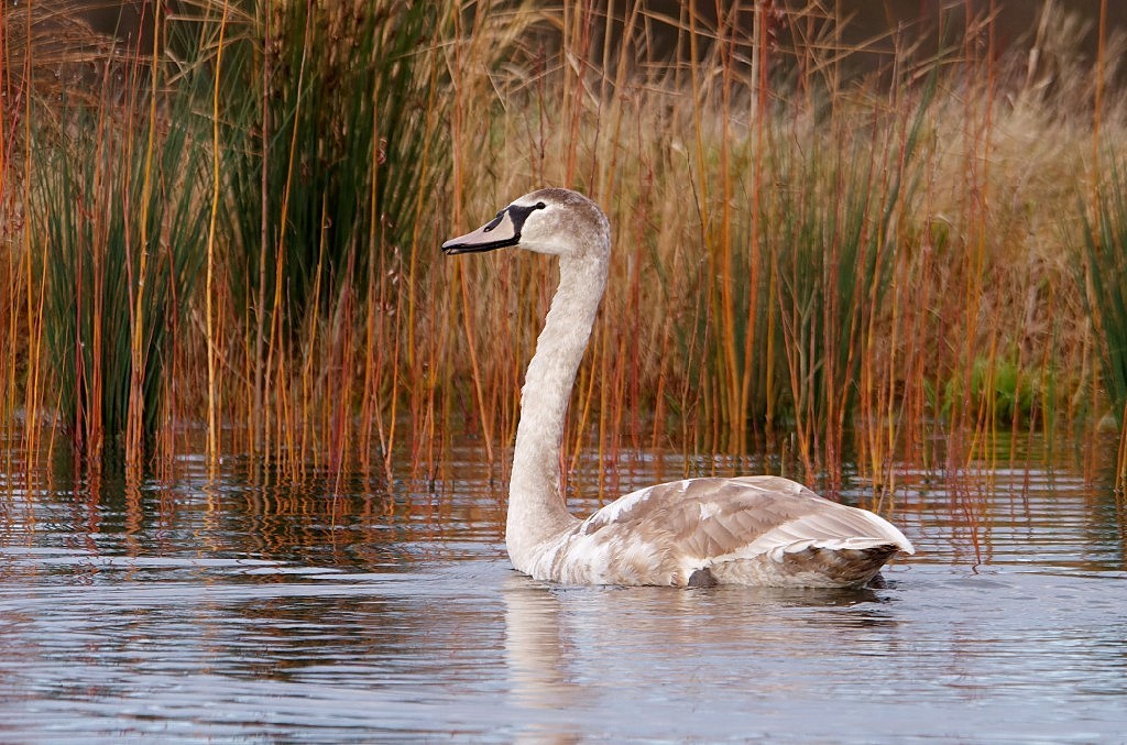 Its always nice to start thenew year with a sur prise or two and such was the case this morning. Firstly, it wasn’t raining as I wandered on to No.4 bed at dawn to review the work which has been done to install sluices and a new bund. These will enable us to control the water level in our wet woodland which, allied to a coppicing regime, should produce ideal conditions for breeding Willow Tits. We’ve had so much rain over the last month or so that all of the lagoons are full to the brim and some of the paths are flooded. The main surprise, though, was the Short-eared Owl which flushed from under my feet as I walked around the bed to check the sluices. Back in the 1980’s Short-eared Owls were regular winter birds and we would often see five or six hunting over the bed but they are now, unfortunately, a less-than-annual visitor. In addition, two Marsh Harriers were actively hunting and flushing hundreds of wildfowl. Then it was down to No.1 bed to review progress with our coppicing program for Willow Tits, which is going well, before finishing with some birding, turning up highlights of 5 Jack Snipe and 2 Woodcocks. Photo of a young Mute Swan Cheers David Bowman