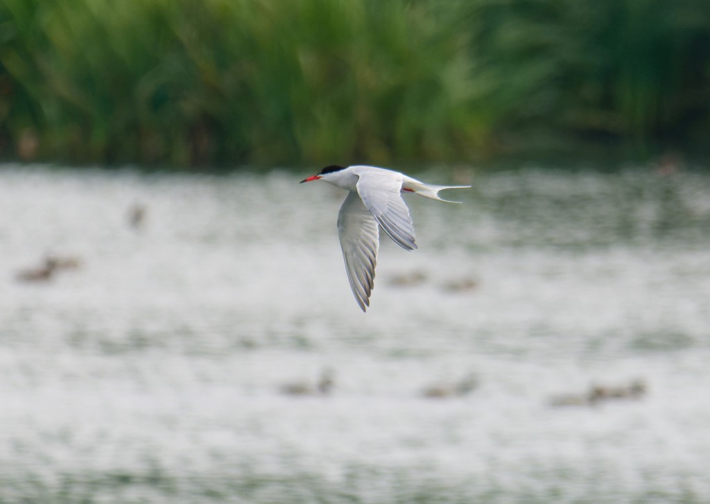 It was warm but overcast yesterday and I spent the morning doing some counts on the No.4 bed wetland, with one eye on the sky for passing migrants. The latter included nine Dunlin and six Common Terns, with the latter all staying briefly to plunge dive for small fish. Unlike No.3 bed, which provides good feeding for terns, the No.4 bed wetland is less productive for them. In the early stages of development wetlands are extremely rich in invertebrate life, which is great for Black-necked Grebes and diving ducks, but less so for fish populations, which take a while to get established. The three Green Sandpipers present have been around for a little while now and are part of the regular autumn build-up, which can see regular double-figure counts made. Snipe, Oystercatcher and a couple of hundred Lapwings were other waders taking advantage of the increasing muddy margins as water levels start to drop. Ten Black-necked Grebes were still showing well in front of the viewing platform, while the 80 or so Swifts feeding voraciously around the platform were almost certainly from the nearby and nationally important, Westy Estate breeding colony. Photo of one of the Common Terns Cheers David Bowman