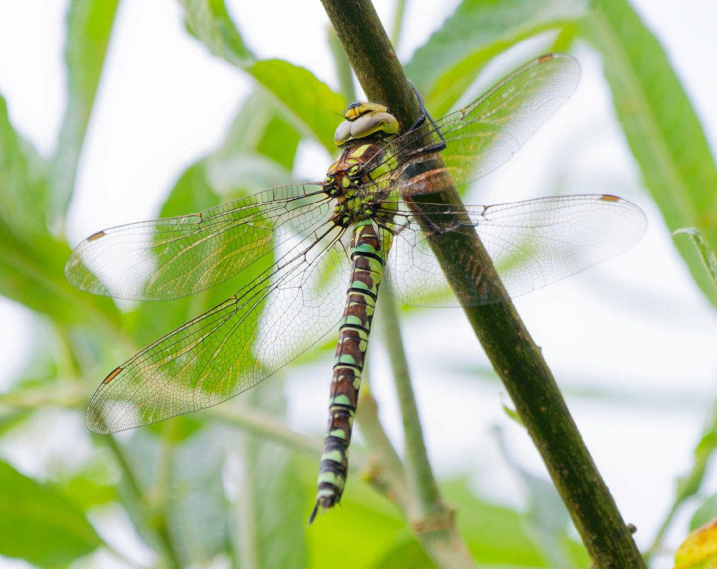 It was another warm, humid morning with return passage gaining pace and some good breeding records, too. Birds passing through included 1 Red Kite, 9 Common Terns, 3 Green Sandpipers, 2 Redshanks, 1 Black-tailed Godwit and 1 Oystercatcher. Further broods of Tufted Duck, Gadwall and Pochard were noted, with the latter now having produced twenty broods, which is better than average, though some way short of last year’s 37. Twenty-two Black-necked Grebes included 11 juveniles and it won’t be long before they all start heading south. Numbers of moulting Gadwall remain high, with around 800 counted across Beds 2, 3 and 4. Dragonflies were present in decent numbers, across the three beds while butterflies were still scarce compared with most recent years. Counts included: 1 Migrant Hawker, 2 Southern Hawkers, scores of Black-tailed Skimmers, 1 Ruddy Darter, 15 Brown Hawkers, 8 Common Darters, 3 Ringlets, 5 Small Skippers, 3 Meadow Browns, 6 Large Whites, 30 Gatekeepers and 6 Commas. Photo of a Southern Hawker Cheers David Bowman (with Dan Owen