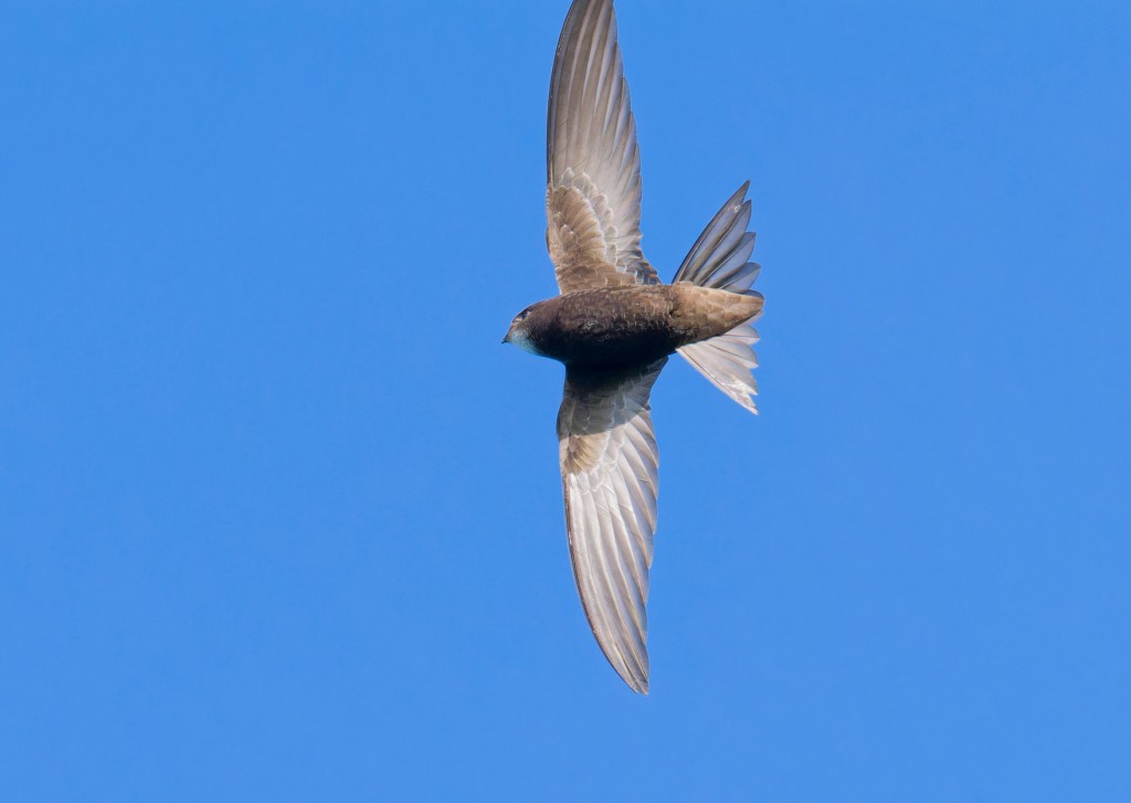 t was another, somnolent high summer’s day, with not much moving but some good counts made. On No.4 bed the wetland held a drake Garganey, 2 Black-tailed Godwits, 3 Green Sandpipers, 1 Snipe. 18 Black-necked Grebes, 95 Pochard (probably all from our breeding population) and three new broods of Tufted Duck, plus a few scores of Gadwall and a couple of hundred Coot. It was unusual, though, to see a group of 18 Cormorants fly in from the south and drop onto the Mersey to the the north of the bed. The local population of around 80 Swifts was again taking advantage of the rich aerial feeding over the bed, along with a handful each of the three hirundines. Walking off the bed it was good to find 30 Cinnabar Moth caterpillars feeding on Ragwort, which is their main food plant. They used to be extremely common on the Reserve but now we rarely see them. As these attractive caterpillars are one of the main food sources for juvenile Cuckoos, we’re hopeful that they’ll make a come-back given how widespread Ragwort has again become. A last hour in No.3 bed produced another two Black-necked Grebes and a male Banded Demoiselle to finish off a very pleasant morning. Photo of a Swift Cheers David Bowman (with Dan Owen)