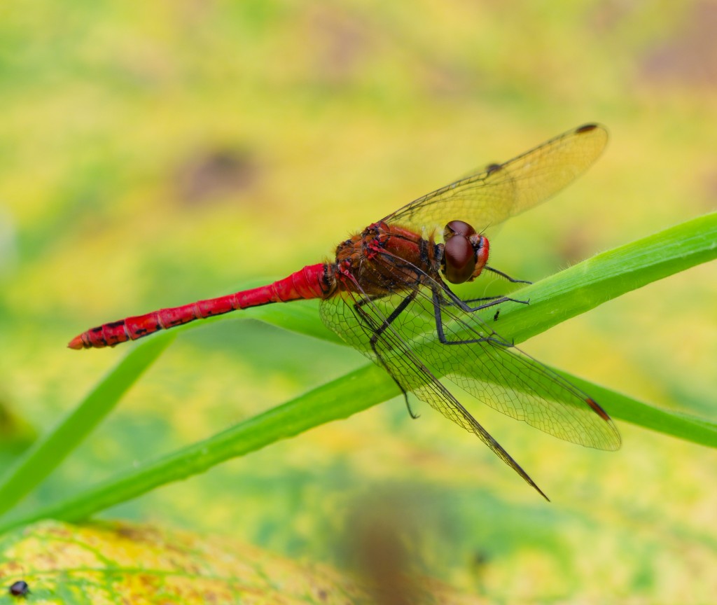 High humidity has been a feature of most recent visits to the Reserve and this morning was no different. So, we started with a lazy couple of hours in the Morgan Hide before heading off to undertake a dragonfly and butterfly survey of No.2 bed. Early on, Green Sandpiper and Little Egret were feeding in front of the hide and were later joined by a Kingfisher. The latter are a daily sight at this time of year now that the young have fledged. Our struggle along the over-grown paths around No.2 bed were rewarded with some reasonable counts, though not the exceptional numbers of dragonflies noted earlier in the summer. Dragonflies totalled: 2 Ruddy Darters, 1 Migrant Hawker, 2 Southern Hawkers, 3 Brown Hawkers, 7 Black-tailed Skimmers and 14 Common Darters. The story for butterflies has been the opposite of that for dragonflies, with an almost total dearth of sightings until recently. This current settles spell has seen things pick up slightly and totals were: 3 Peacocks, 6 Gatekeepers, 18 Speckled Woods and 5 Whites. Photo of a male Ruddy Darter Cheers David Bowman (with Helen Wynn and Brian Baird)