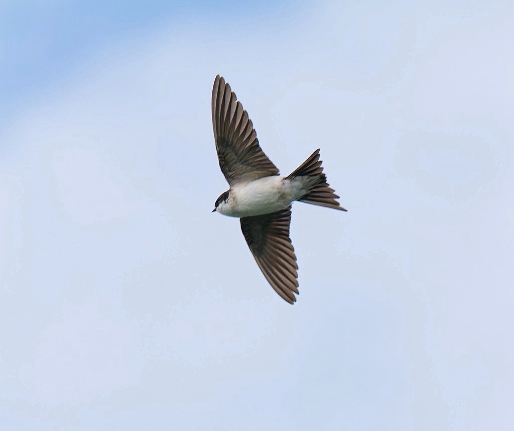 With the weather forecast showing a light southerly wind and low cloud, ahead of lunchtime showers, conditions looked perfect for observing migration. So, we were in place on the No.4 bed wetland viewing platform not long after dawn and were treated to a spectacular movement of Swifts and hirundines. In four hours we counted around 1,500 aerial feeders coming in, at low level from the north, pausing to feed over the water and then pushing on southwards. Final counts were: 85 Swifts, 405 Sand Martins, 370 Swallows and an impressive 700 House Martins. Also of note were two late staying juvenile Black-necked Grebes and two juvenile Marsh Harriers, one of which was wearing a green colour-ring, and so likely to be from the brood which was ringed on the Reserve earlier this year. Photo of a House Martin Cheers David Bowman (with Helen Wynn and Brian Baird)
