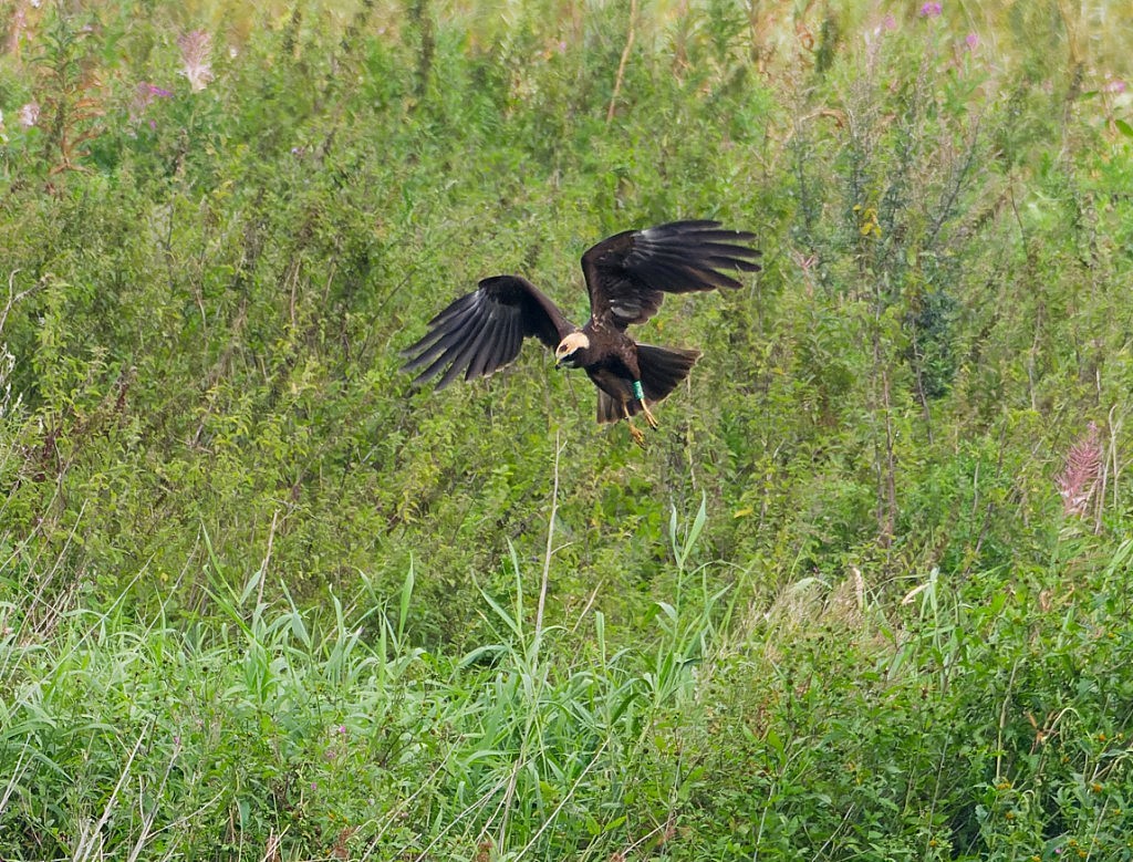 Photo of a colour-ringed juvenile Marsh Harrier, almost certainly from the brood which was ringed on the Reserve earlier this year. Cheers David