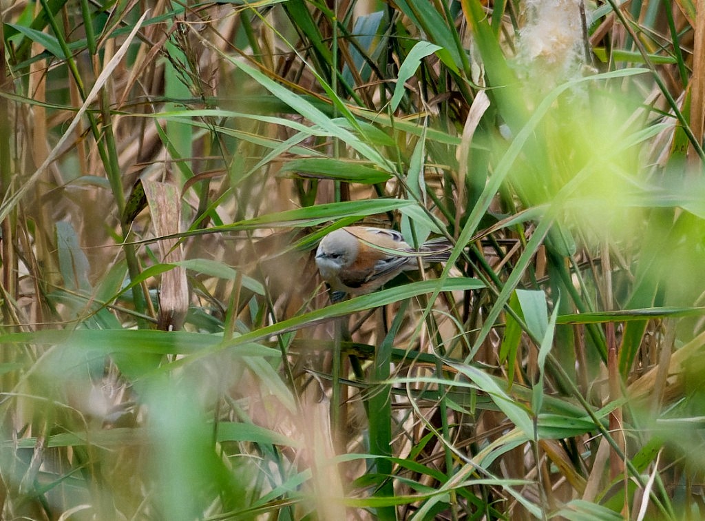 The week started well, with Dan Owen bringing the year list to an exceptional 160, with an over-flying Woodlark on Monday, only the second ever for the Reserve. The first-winter Penduline Tit was then still present, along with Water Pipit, Yellow-browed Warbler and yet another over-flying Hawfinch. The Penduline Tit has since provided daily views, including this morning, when I found it close to the No.4 bed viewing platform, filtering through the reeds at close range, once the dense ground mist had lifted. Interestingly, it seems to be undergoing a fairly rapid post-juvenile moult, with a more definite suggestion of a mask than when first found on Saturday. Several of our visiting permit holders were then able to get decent views. Even more pleasingly, our wardens, Lizzie and Jasmine, plus our team of hard working volunteers were treated to close views as it landed on the nesting island they were busy clearing where it spent time hunting at ground level, presumably looking for spiders amongst the mass of cobwebs which cover the island. Record shot of the Penduline Tit Cheers David Bowman (with Dan Owen, John Rayner and John Ireland)