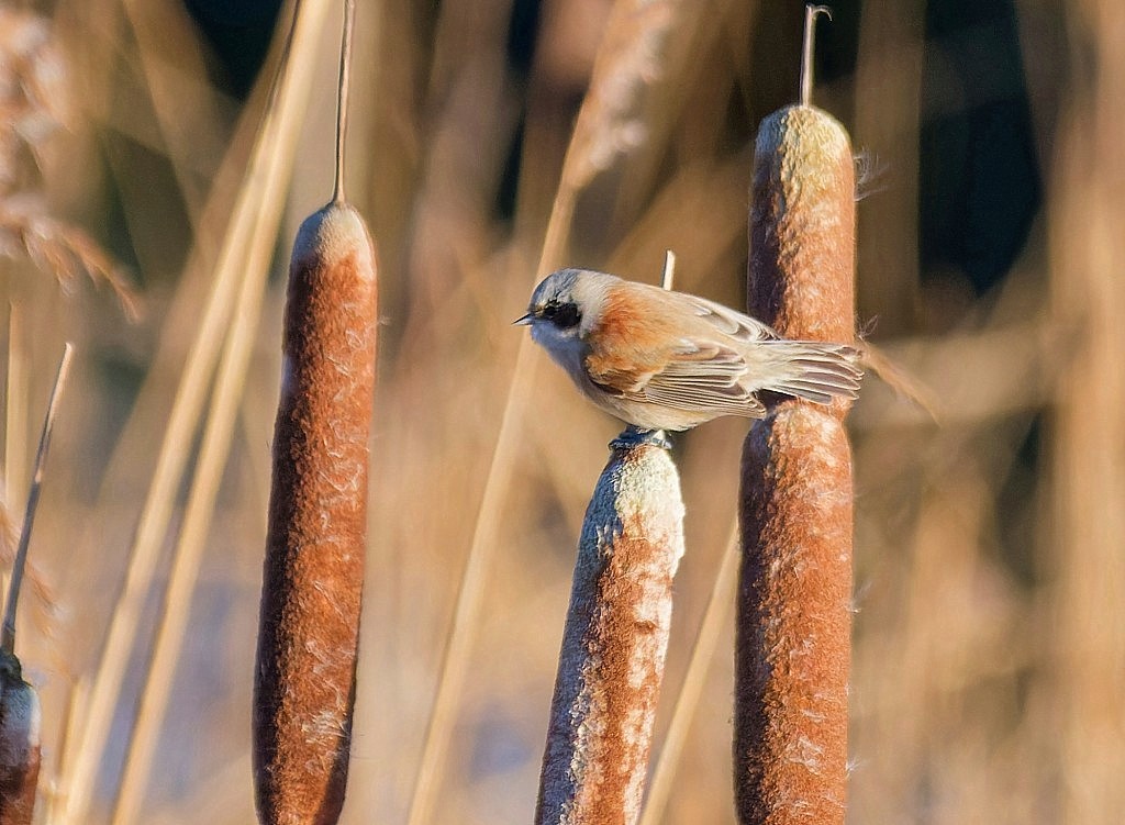 It’s been a variable week or so, with the big freeze driving most of our wildfowl away, then a dull, rather quiet period followed by gales. Saturday, though, put it all to rights, with a light frost, blue skies and masses of returning birds making for an exceptional morning’s winter birding on Beds 4 and 2. The long-staying Penduline Tit was the star, showing well for a couple of hours, back feeding on Typha seed-heads, rather than the spiders it favoured during the cold spell. Wildfowl numbers included: 4 Goldeneye, 12 Pintail, 35 Wigeon, 3 Shelduck, 65 Pochard, 1,250 Teal, 300 Gadwall, 150 Shoveler, 200 Tufted Duck, and 100 Mallard,. Other sightings included 5 Marsh Harriers, 1 Yellowhammer, 1 Snipe, 14 Pink-footed Geese and 6 Lesser Redpolls. Let’s hope for more of the same in the coming weeks. Photo of the Penduline Tit Cheers David Bowman (with Dan Owen, Helen Wynn and Brian Baird)