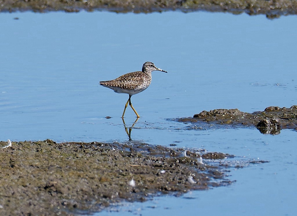 It’s been an excellent week, with the dry, un-seasonally hot weather lowering water levels and exposing more muddy margins for waders on No.4 bed Friday saw a male Hen Harrier reported flying over No.1 bed, while counts of Black-necked Grebes across Beds 3 and 4 indicated that at least 20 pairs were settled, many of which were visibly on nests. Tuesday then produced a nice flurry of waders on No.4 bed, with a Turnstone flying through and five Wood Sandpipers, Greenshank, Common Sandpiper, two Ringed Plovers and two Little Ringed Plovers feeding out on the mud. With the emergence of so many dragonflies Hobby is now a daily sighting, hawking for dragonflies over No.4 bed as they rise on the warming air. Record shot of a Wood Sandpiper Cheers David Bowman (with Dan Owen, Helen Wynn, Brian Baird and Ciara Bass)