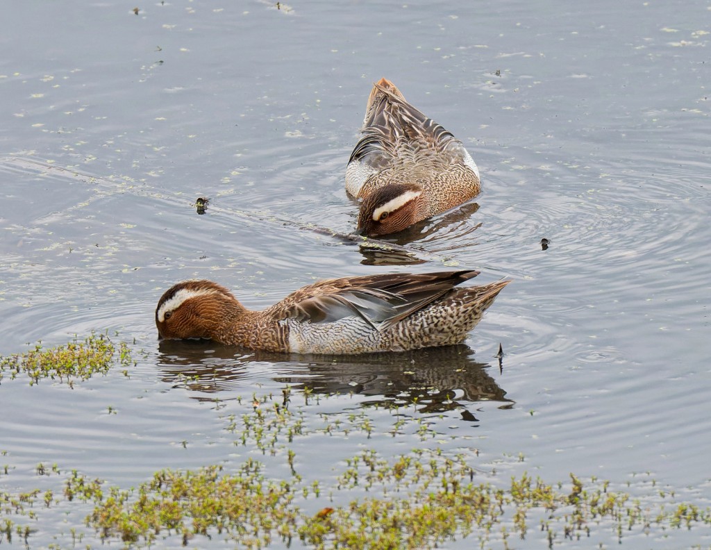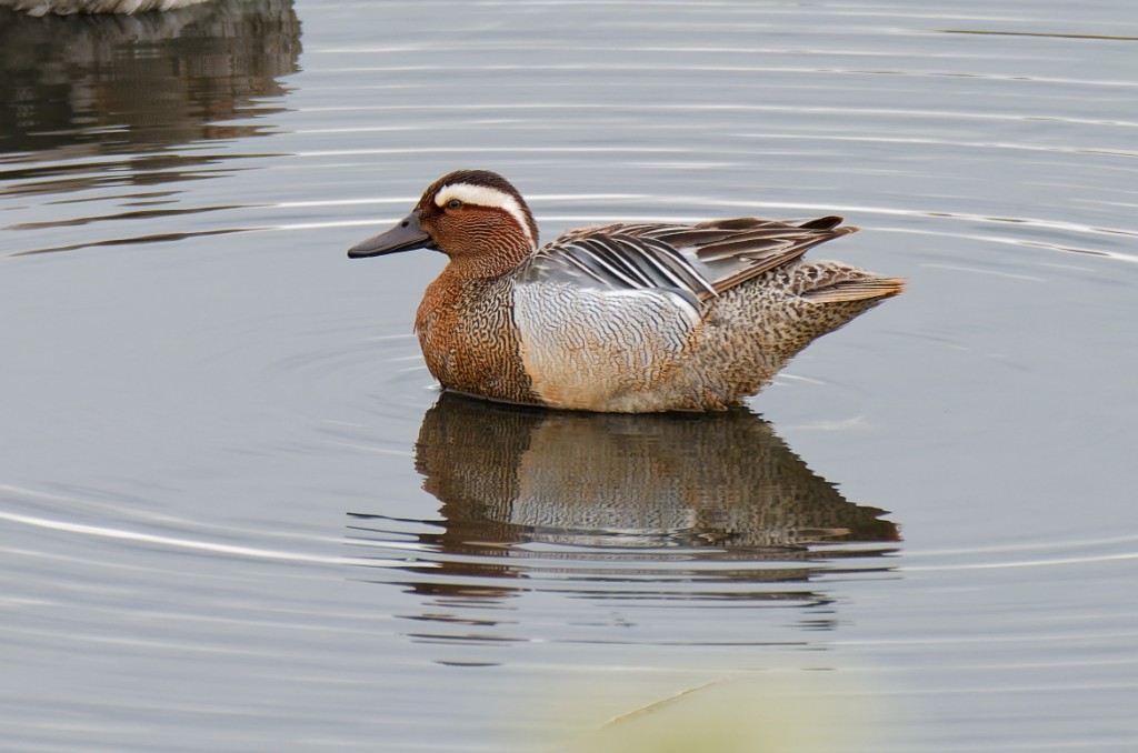 After so much time lost to preparing the submission for our planning application for the No.4 bed viewing platform and two days interviewing for our new Assistant Warden post, it was a pleasure for me to just be out counting birds this morning. It was the monthly Wetland Birds Survey (WeBS), so all beds were covered with some great results. On No.4 bed a Cattle Egret flew through, for only our second record, with other notable sightings of 1 Ruff, 5 Little Egrets, 3 Black-tailed Godwits, 4 Common Terns and 54 Black-necked Grebes. Over on No.3 bed 2 drake Garganeys and a Greenshank were in front of the Morgan Hide, with another 5 Black-necked Grebes looking settled. All this along with many hundreds of the commoner water-birds made for an outstanding morning. As I was leaving it was nice to see 5 Red-eyed Damselflies, including a mating pair, at the usual site below the No.3 bed Footbridge. Photo of a Garganey Cheers David Bowman (with Dan Owen, Brian Baird and Sue Haddock)