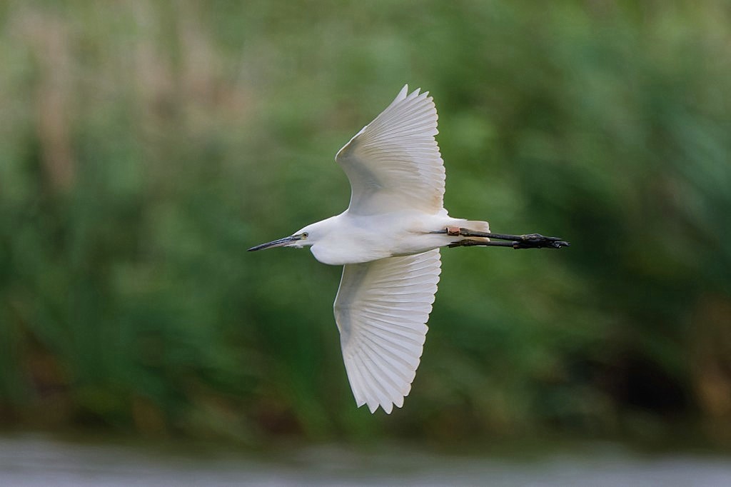 After yesterday’s high winds there was always a chance that a wind-blown seabird might turn up, particularly with so many being observed along the coast, locally. In the past, storms have brought in to the Reserve such good birds as Leach’s Petrel, Storm Petrel, Arctic Skua and Great Skua. Walking onto No.3 bed, shortly after dawn, a Hobby, which came out of trees on the south bank and flew towards the Ship Canal, was probably roosting on the bed. The regular cloud bursts over the morning served to bring down a few birds, though nothing too dramatic. Totals for the morning included: a juvenile Common Tern, 45 Swallows, 23 House Martins, 12 Sand Martins and a Little Egret. The latter was colour-ringed though, unfortunately, it wasn’t possible to make out the lettering. Waders included: 2 Ruff, 1 Little Ringed Plover and 1 Black-tailed Godwit, while the regular male Marsh Harrier also put in an appearance. Photo of the colour-ringed Little Egret Cheers David Bowman (with Keith Gallie)