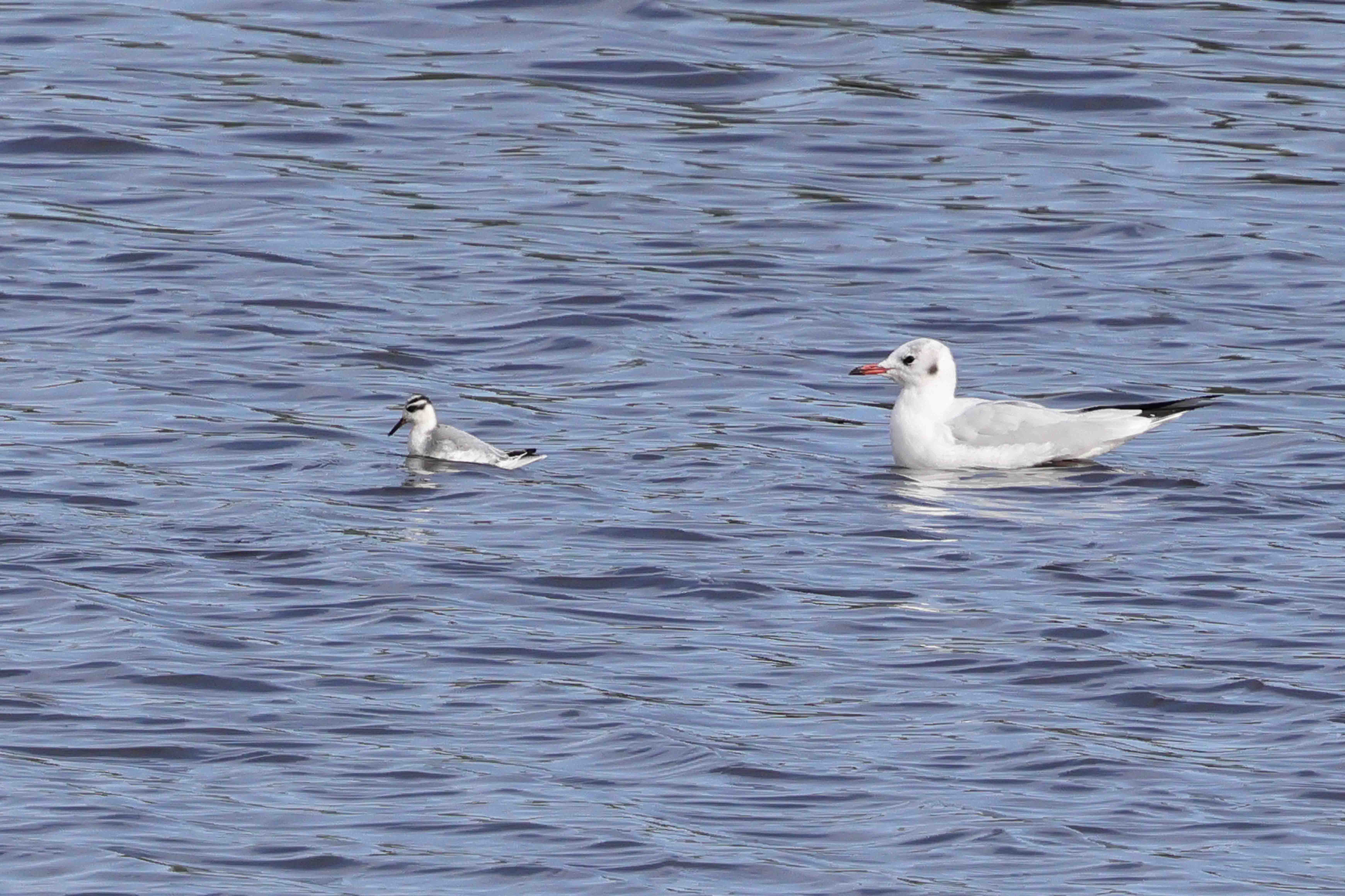 Having spent the best part of three weeks away in Wales, it was good to get back to the Reserve this week. While I’ve been away some of our winter visitors have returned, including the first Pink-footed Geese on the 21st September and Redwings on the 24th. Two Red-breasted Mergansers, which flew onto No.4 bed from the east on the 27th were a good sighting for the Reserve, with six Whooper Swans then over No.3 bed on the 29th and an early Brambling on the last day of the month. October opened with Hawfinch and Rock Pipit on No.4 bed but it was the gales on the 3rd and 4th which produced the best sighting of the autumn so far. With seabirds blown onto the north-west coast and further in land, there was always a chance of something good turning up in the following days. On the morning of the 6th Keith Galley found a Grey Phalarope in front of the Morgan Hide, only the second ever sighting for the Reserve. Despite harassment from the Black-headed Gulls it has been feeding well and was still looking settled today. Grey Phalaropes are small wading birds which breed in the Arctic tundra and winter off the coasts of Africa. They tend to migrate well out at sea and are mainly seen when blown onto shore by autumn gales. Photo of the Grey Phalarope Cheers David Bowman
