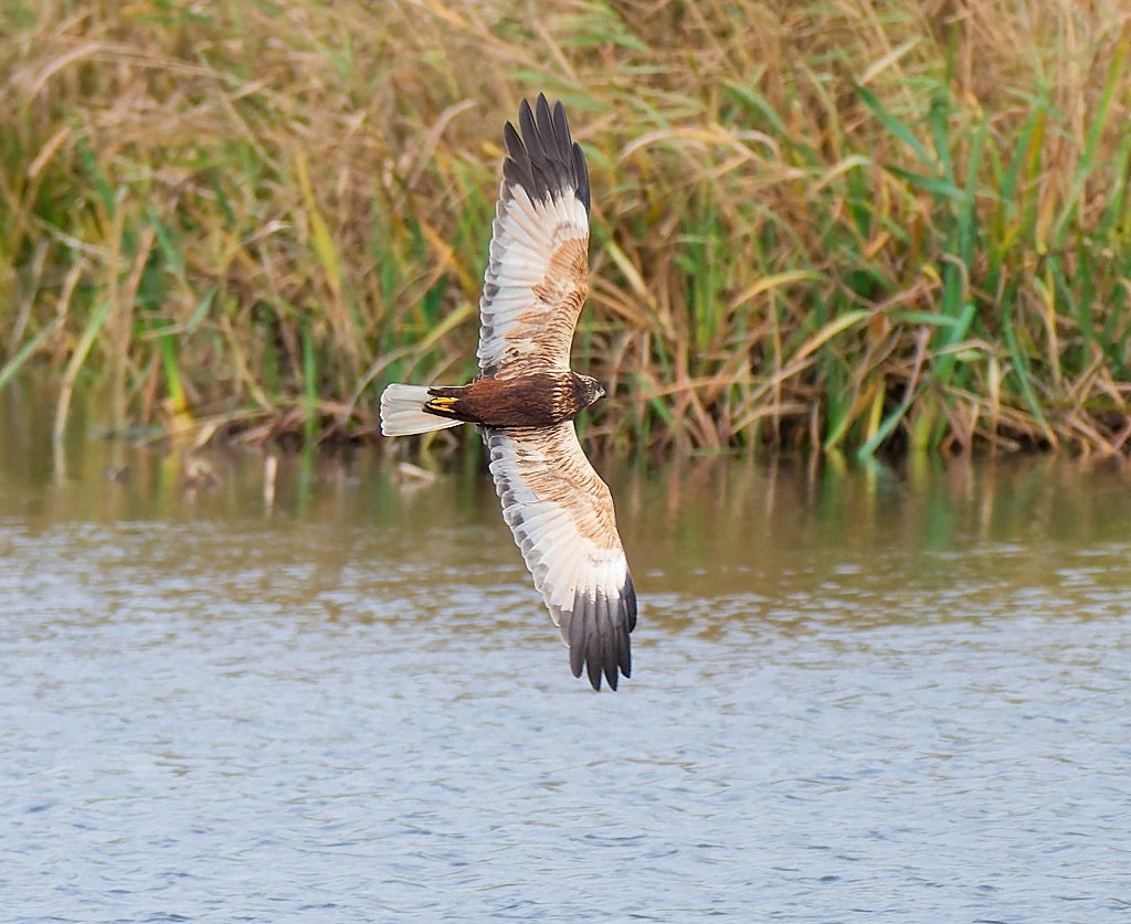 There were some good records last weekend, while I was away on a family long weekend to Edinburgh. On Friday a Cattle Egret, a scarce bird for the Reserve, circled No.3 bed while 18 Whooper Swans dropped onto No.4 bed. Its been a good autumn so far for the latter, with several sightings already. Saturday then saw two Great White Egrets arrive on No.3 bed. Things have been pretty steady since then, with a Woodcock on No.1 bed on Thursday and some visible passage over No.4 bed on the same day, which included: 2 Siskins, 2,000 Woodpigeons, 500 Pink-footed Geese and a few Redwings and Fieldfares. This morning was chilly in the easterly wind at dawn and apart from a Brambling and a Water Rail from the Morgan Hide, the main entertainment came from watching the resident male Marsh Harrier spend most of the morning trying unsuccessfully to catch a Teal for breakfast. Photo of the male Marsh Harrier Cheers David Bowman (with Helen Wynn)