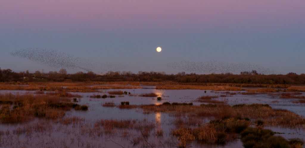 Photo of Saturday’s Starling murmuration, with Full Moon, on No.4 bed Cheers David