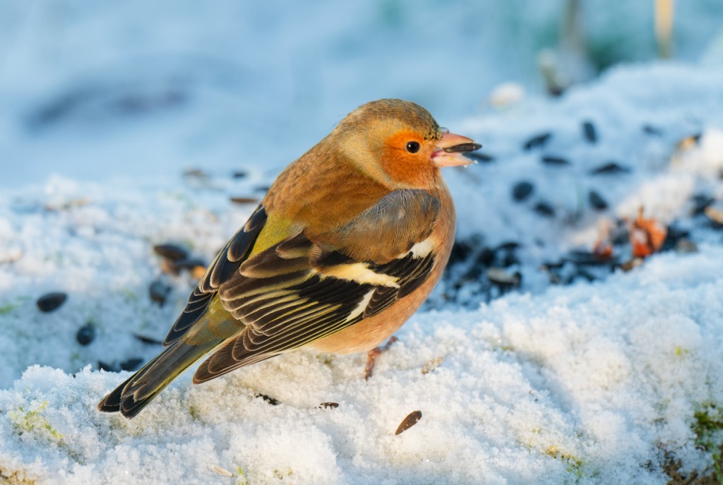 Another sparkling winter’s day at Woolston Eyes, with a hard frost and clear blue skies. With the lagoon on No.3 bed frozen over, all of the remaining wildfowl were working hard to keep some water open on No.4 bed. The feeding stations on No.3 bed, allied to the sacrificial seed crop, provide a lifeline for seed-eaters during hard winter weather and 2 Bramblings, 7 Reed Buntings, 80 Greenfinches, 120 Chaffinches and 11 Bullfinches were feeding voraciously around the bed. Winter thrushes were also present. with 60 Redwings and 15 Fieldfares foraging in leaf litter or hoovering up the few remaining Hawthorn berries. Conditions were also tough for our wardens, as we had hired a Truxor for the week (a machine which is track-driven but also aquatic) to cut fresh channels and pools in the reed-beds. With the bed totally frozen, Eva and Jasmine were having to use it as an ice-breaker prior to actually doing any cutting. Hopefully, conditions will ease as the week progresses and the work will become a little easier. Photo of a Robin in the snow Cheers David Bowman